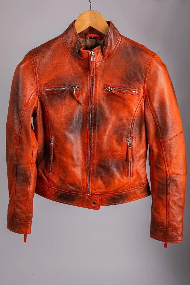 Bold, vibrant, and effortlessly stylish, the Tifrano Marrakech Leather Jacket is designed for women who embrace fashion with confidence. Crafted from premium sheep leather, this fox-colored leather jacket showcases a rich burnt-orange hue with a stunning natural gradient effect.